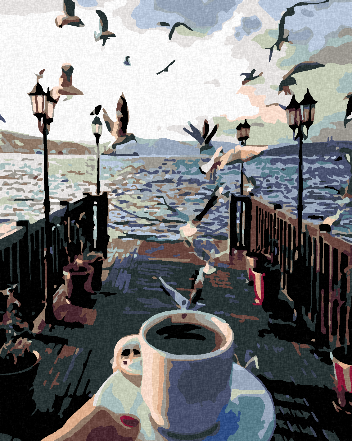 Diamond painting - TASSE KAFFEE UND MÖWEN ÜBER DEM MEER