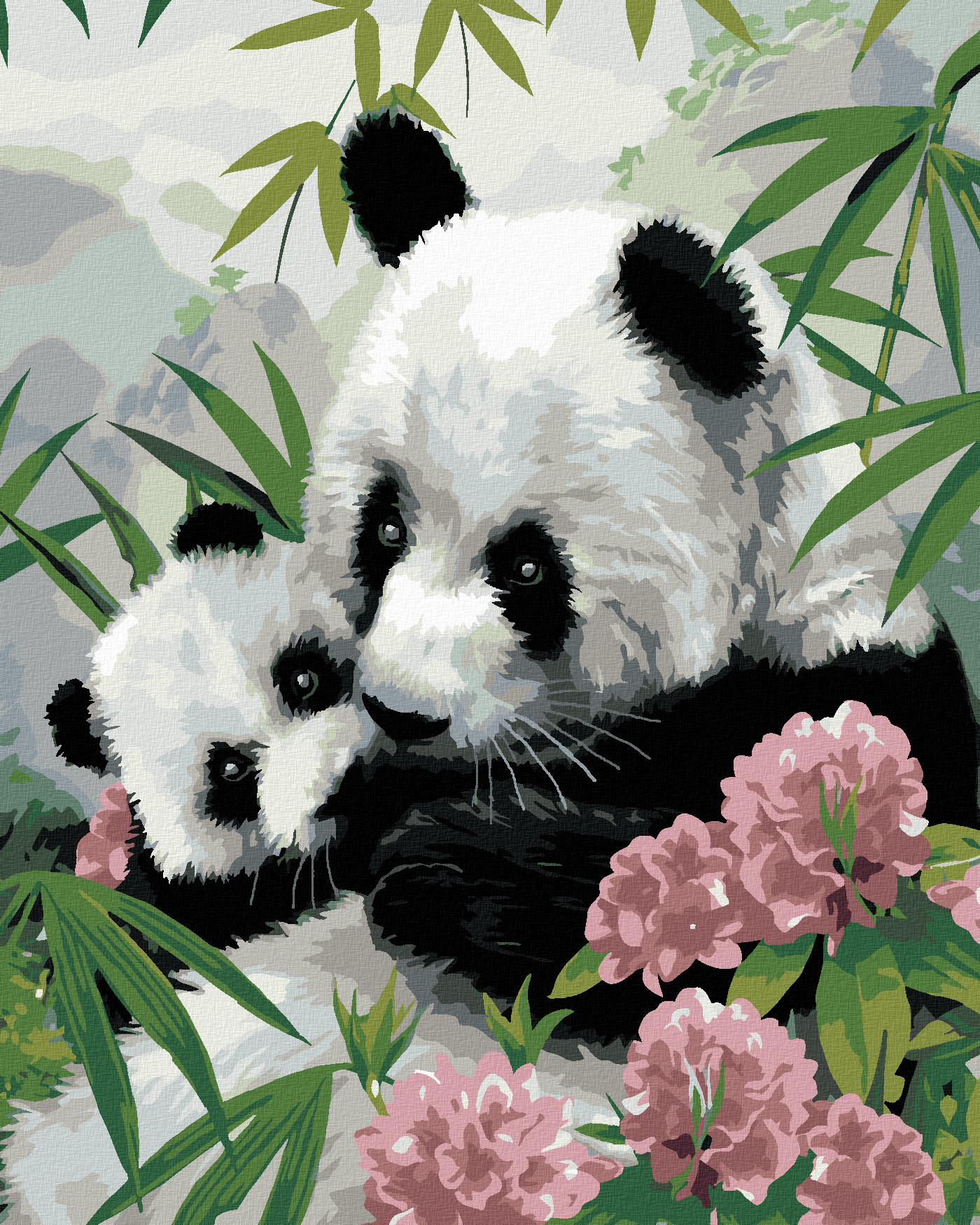 Diamond painting - PANDA MIT JUNGEM UND ROSA BLUMEN (HOWARD ROBINSON)