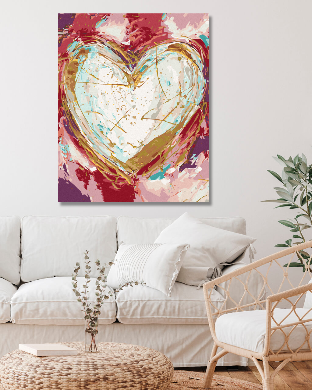 Diamond painting - WEISSES HERZ AUF FARBIGEM HINTERGRUND (HALEY BUSH)