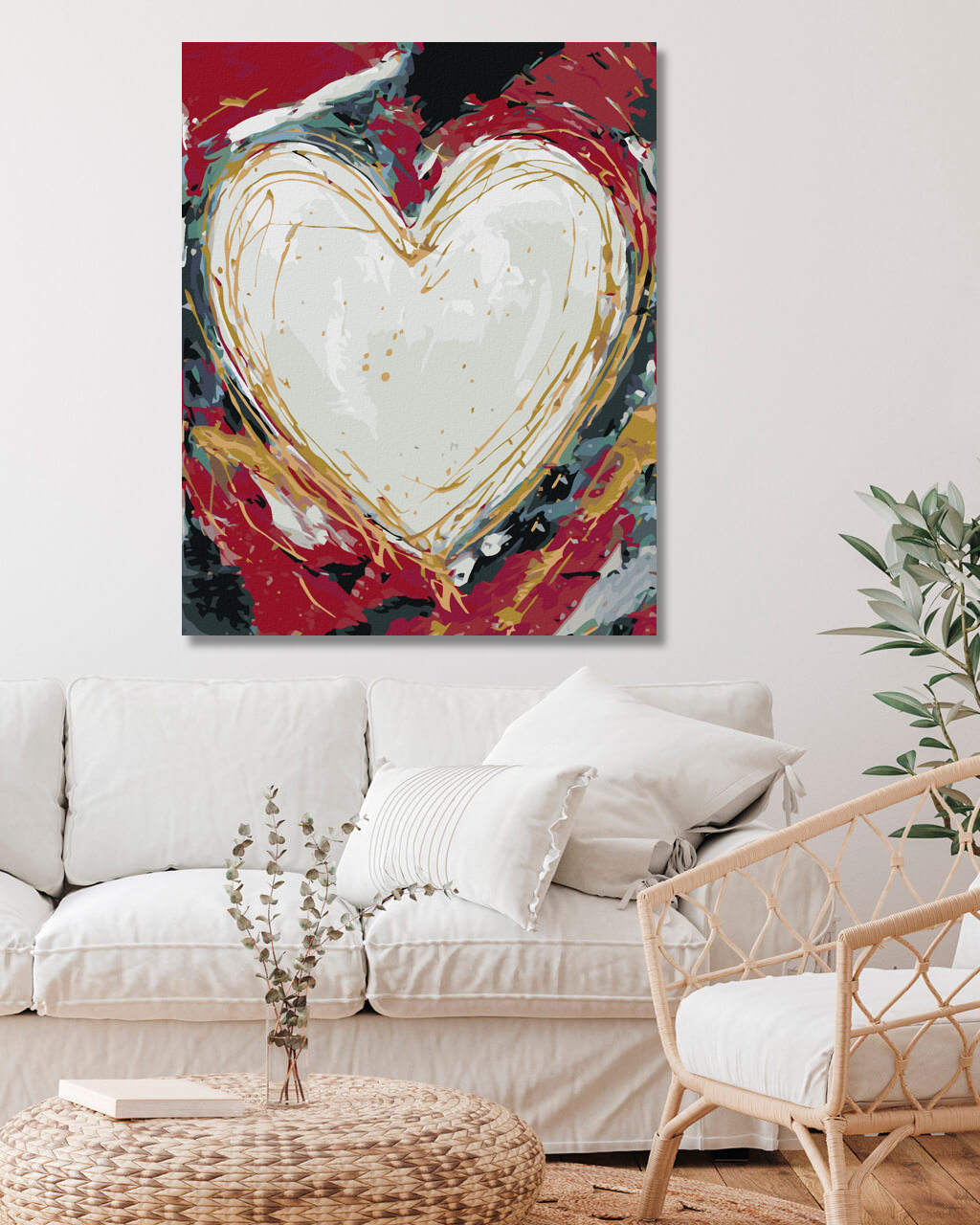Diamond painting - WEISSES HERZ AUF FARBIGEM HINTERGRUND II (HALEY BUSH)